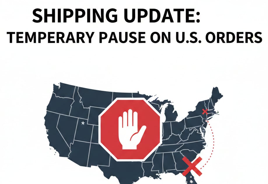 Please be advised that we are temporarily suspending shipping to the USA, effective immediately. We are working hard to resolve [logistical/customs/operational] updates to ensure we can provide the best possible service when we return.